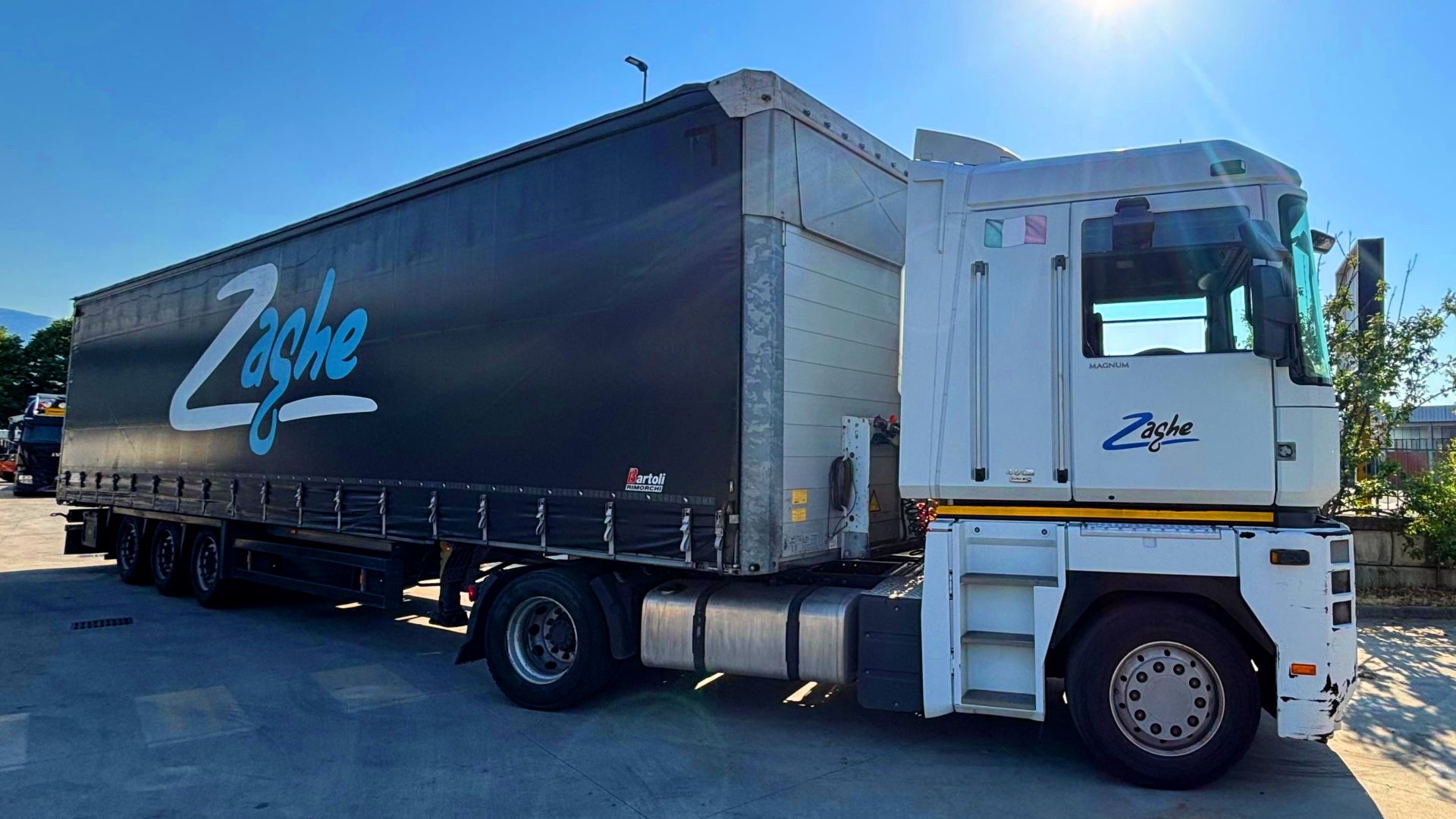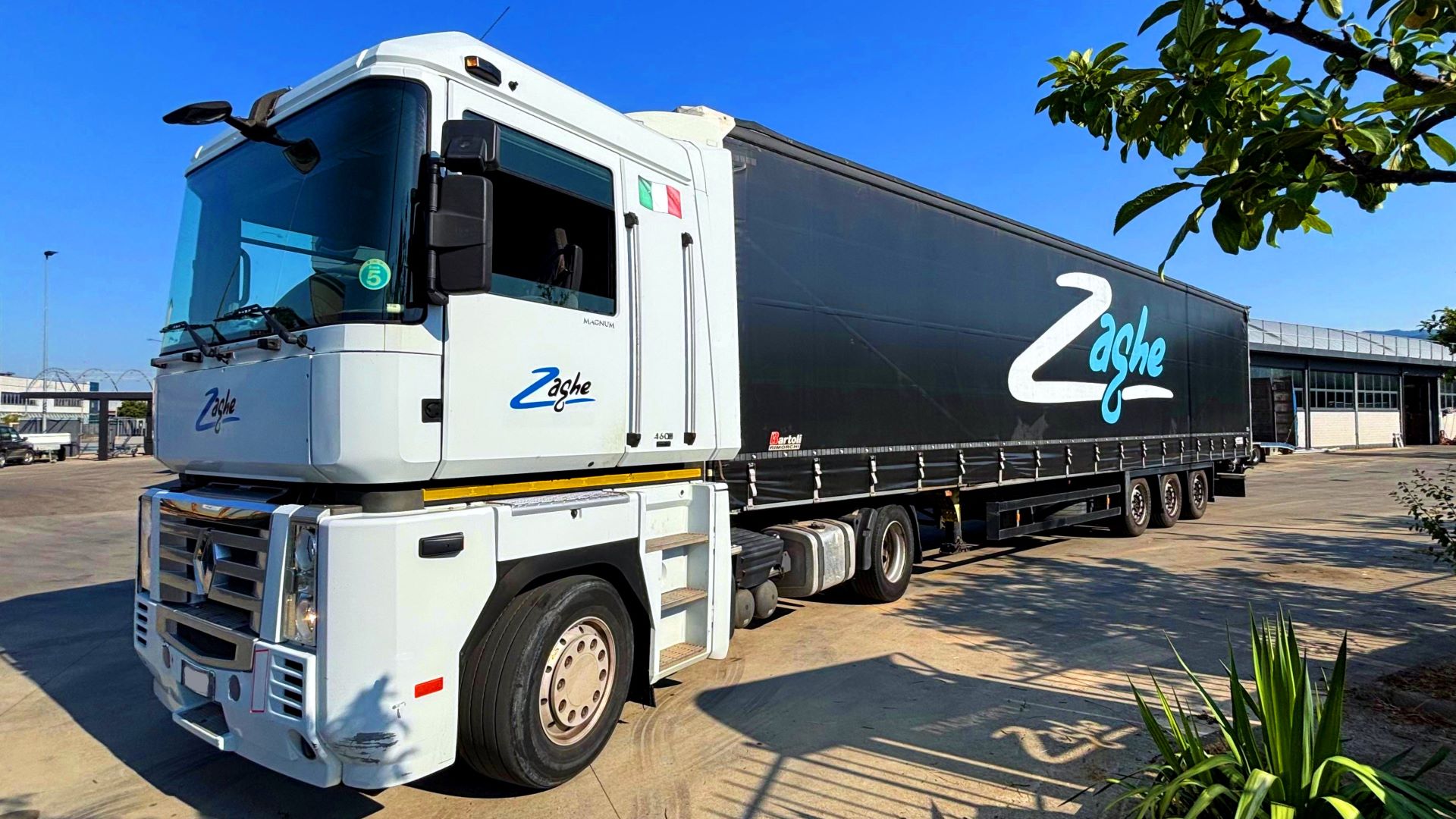 Il semirimorchio, chiuso con telo, garantisce sicurezza e protezione del carico durante tutto il percorso, mantenendo la flessibilità tipica dei mezzi Zaghe.