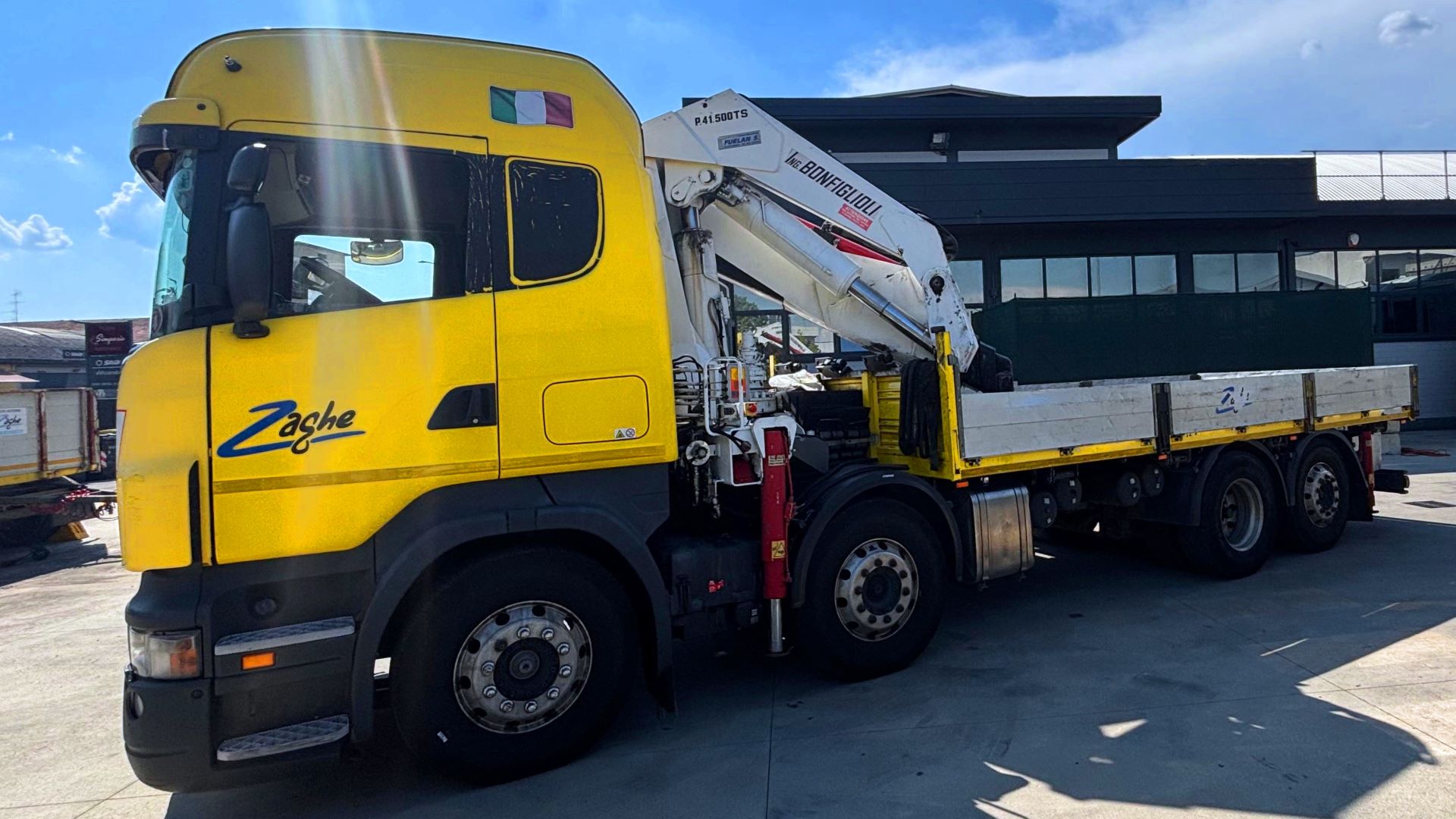 Il Camion Gru Scania 480 CV a 4 assi con gru Bonfiglioli 42000 TL rappresenta una soluzione ideale per movimentazioni rapide e precise, anche in spazi ridotti.
