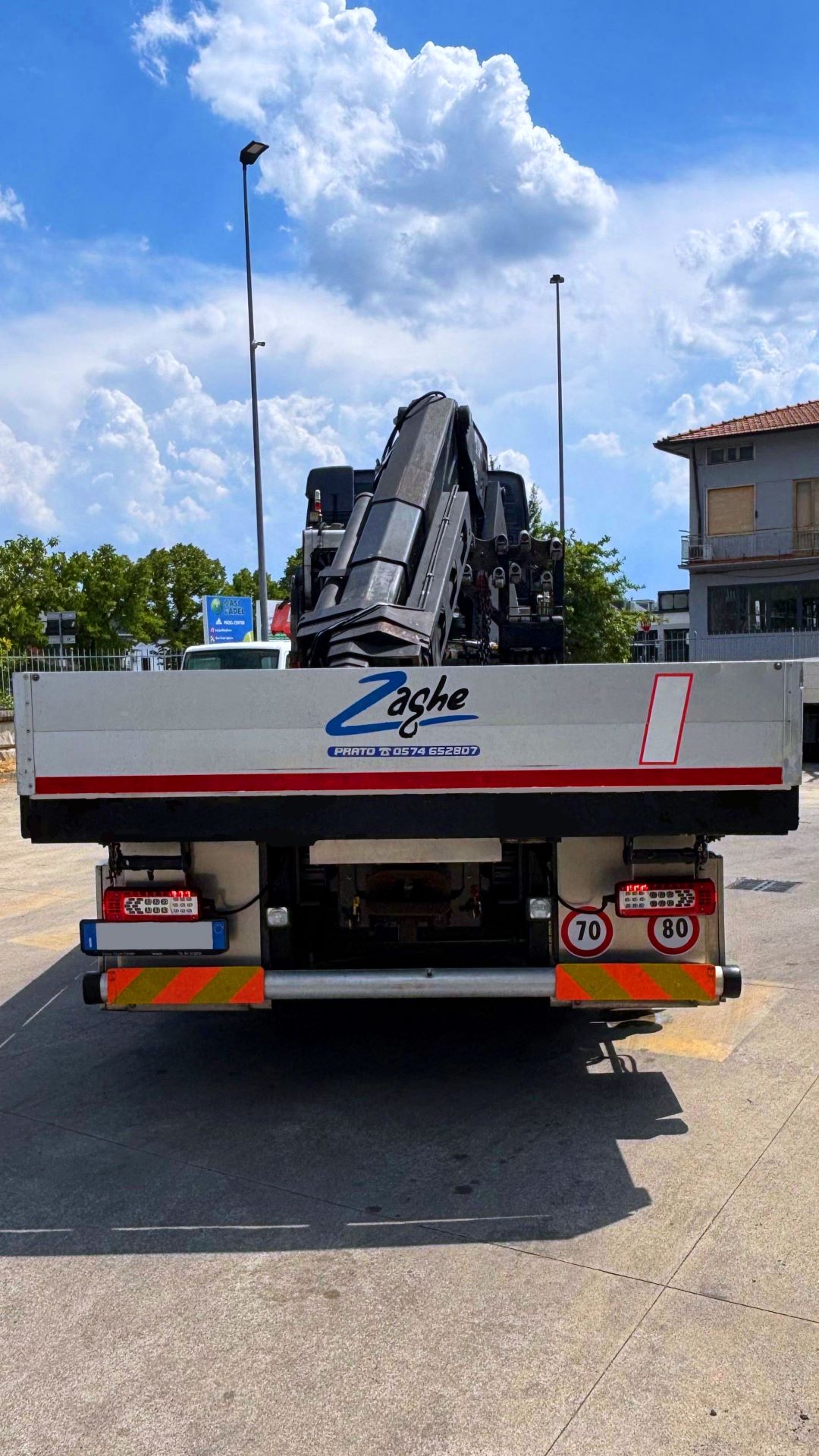 Il camion è dotato di cassone robusto, sospensioni integrate e possibilità di combinare trasporto e sollevamento con efficienza e sicurezza.